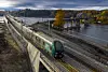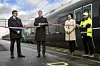 Åpningstoget har kjørt over Minnevika jernbanebru og kommet fram til Langset. I bakgrunnen til høyre skimtes den gamle jernbanebrua. Foto: Hans-Petter Lyshaug/Bane Nor