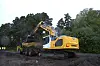 Gravemaskinen frakter massene fra bakken og opp i hjullasteren. Foto: Marius Lysø