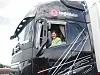 Vegdirektør Ingrid Dahl Hovland ankom i lastebil etter å ha fått prøvekjørt på den nye veien. Foto: Jørn Hindklev