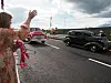 Veteranbilkortesjen fikk kjøre i front etter av veien ble åpnet. Foto: Jørn Hindklev