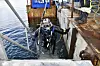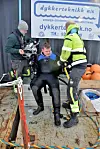 Anleggsdykker Jacub Elias på vei opp til dykkerflåten.