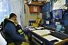 Dykkerkollegaen Andreas Carstensen følger med på en kameramonitor og kommunisere med han gjennom en høyttaler i kammeret.