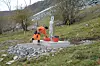 Når testen skjer for mur på oppsiden av E134, blir betongblokkene løftet i posisjon på toppen av muren ved hjelp av kran.
