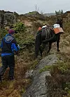 Der det ikke går an å komme frem med biltransport, blir det benyttet hest, skriver Vegvesenet. Der hvor veien tillater det, skjer dette med vogn, men i kupert terreng kan hesten bære betongen på ryggen frem til plassen der fastmerket skal bygges.