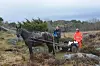 Det blir brukt transport med hest når Statens vegvesen skal få opp fastmerker til veibyggingen på riksvei 555 Sotrasambandet.