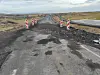 På Reykjanes jobber de islandske veimyndighetene på spreng for å stenge av der de må og reparere der de kan, slik at innbyggere og hjelpemannskaper har en trygg vei ut av området om katastrofen skulle inntreffe.