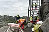 Ved 13-tiden var Trollpikken omtrent i rett posisjon. Kun finjustering gjensto før den tolv tonn tunge steinen kunne festes til fjellet. Jernkiler skal festes i steinen, disse plasseres i hull som er boret i fjellet – før lim og sement skal sørge for at alt holder seg på plass.