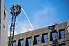 Oslo 20230612. Nødetatene er med store styrker etter melding om brann på en tak terrasse i Oslo sentrum. Brannen blusset opp igjen natt til mandag. Foto: Frederik Ringnes / NTB