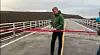 Statssekretær Stein Mathisen klipte snora og åpnet den nye vegstrekningen på E6 i Finnmark med ny bru over Vuolmmašjohka. Foto: Ida Lundgren Kristensen Statens vegvesen