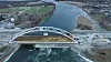 Nye Storslett bru på E6 over Reisaelva i Nordreisa kommune ble flyttet på plass 2. november 2025. Ole Morten Pedersen / Statens vegvesen