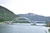 Loftesnesbrui krysser Loftesnessundet mellom Sogndalsfjorden og Barsnesfjorden, og er 194 meter lang og kostet om lag 300 millioner kroner da den sto ferdig i 2017. Foto: Wikipedia