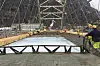 Den nye brua ble kjørt på plass i februar, og blir liggende på sin midlertidige plassering fram til høsten.