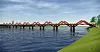 falt på en hengverksbru med overbygning i tre. Hengverket er et bæresystem der