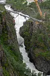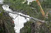 Arbeidere i Consolvo er i full gang med å bygge trappebruen på den populære turistveien ved Vøringsfossen. Foto: Per Berntsen