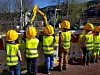 Barna gleder seg over å få barneboka, refleksvest, lære mer om sikkerhet ved og på byggeplass og dessuten få prøve gravemaskin og verneutstyr.
