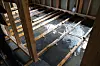 Terje Husemoen (til venstre) og Tølleiv Skulason jobber med å bygge opp huset til ordførerens far etter flommen. Foto: Marius Lysø