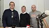 Programleder Christian Aarhus, konserndirektør for anlegg i Veidekke, Øivind Larsen, og programleder Frode Aga.