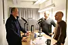 Tidligere samferdselsminister Ketil Solvik-Olsen og programlederne Christian Aarhus og Frode Aga i Byggeplassens podkaststudio.Foto: Arve Brekkhus