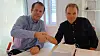 Daglig leder i Consto Anlegg Øst Morten Karlsen (t.v.) og prosjektleder i Statens vegvesen Region sør Jan Helge Egeland.