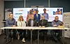 Foran fra venstre: Lars Bjørgård (utbyggingssjef Nye Veier), Kirsti Larssen (direktør Forretningsutvikling Cowi), Johan Arnt Vatnan (prosjektdirektør Nye Veier), Johan Hansson (administrerende direktør Anlegg) og Olle Eurenius (avdelingssjef Peab Anlegg). Bak fra venstre: Prosjektlederne Martin Carrick (Peab Anlegg), Petter Angelsen og Alexander Mosbakk (Peab Anlegg).