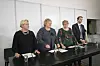 F.v. Finansminister Siv Jensen, statsminister Erna Solberg, kulturminister Trine Skei Grande og nestleder i Krf, Kjell Ingolf Ropstad holder pressekonferanse etter at landstyremøtene sa ja til den fremforhandlede regjeringsplattfomen.