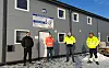 Foran servicebygget på Roverud døgnhvileplass på åpningsdagen. F. v. innehaver av døgnhvileplassen Terje Furuseth, Brandval Bil AS/TF Maskin , Cato Løkken, Statens vegvesen, forbundsleder Tore Velten, NLF, og Lars Rune Hagen, Odal NLF.