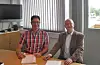 Prosjektleder Arne Ola Stavseng i Statens vegvesen og Torben Møller i Eltel Networks skriver under elektrokontrakten i tredje byggetrinn på rassikringen av fylkesvei 60 Røyr-Hellesylt.