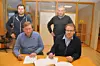 Prosjektleder Tor Elling Kjersem (bak, til venstre) og administrerende direktør Oddgeir Anundsen (foran, til venstre) i One Nordic Kraftmontasje, her sammen med byggeleder Helge Thorsby (bak, til høyre) og prosjektleder Jan Helge Egeland i Statens vegvesen Region sør.Foto: Statens vegvesen