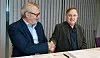 Daglig leder Kristian Aa i Fosen Vind signerer første anleggskontrakt med daglig leder Øystein Syltern i fosenselskapet Johs. J. Syltern as.