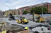 Rundt 150 arbeidere og opptil 40 maskiner er i sving daglig for å etablere nye betongkonstruksjoner, gangbru, ramper og trapper