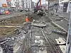 Forberedelsene til nytt trikkespor i Trondheim sentrum er i gang. NRC bruker erfaring fra Finland og Oslo for å legge 18 meter lange skinner med presisjon der sporet skal fortsette. Foto: NRC