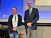 Styreleder Amund Bruland i NFF delte ut Gullfeiselen til Anne-Lise Berggren.