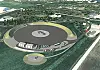 * Sirkelformet oppsamlingsplate i betong. Utstyr for simulering av ulike flybranner er montert her.
