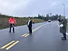 Avdelingsdirektør Nils Karbø i Statens vegvesen og Hans Jacob Hansen fra Gardermoen næringspark holdt snora da ordfører Ståle Lien Hansen åpnet første byggetrinn av ombyggingen av Grønnvollkrysset på E6. Her på tilstøtende fylkesveg.Foto: Statens vegvesen