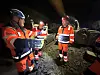 Prosjektdirektør i Skanska, Are Eliassen forklarer, mens Prosjektsjef i Statens vegvesen, Reidar Johansen og Varaordfører i Harstad, Espen Ludviksen lytter. Foto: Anita Arntzen, kommunikasjonsansvarlig, OPS Hålogalandsvegen / Skanska Norge AS