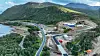 Ny bru og nylagt asfalt: Den nye delen av rv. 85 fra Fiskefjorden mot Lødingen er snart klat til bruk. Oppe til høyre ses Fiskefjordtunnelen. Her skal E10 og rv. 85 knytes sammen med et stort oversiktlig og effektivt kryss. Foto: Statens vegvesen