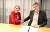 Prosjektleder Hanne Louise Moe i Statens vegvesen og direktør tunnel John Magnus Lello i Implenia AS har inngått kontrakt om bygging av tunneler i Roan.