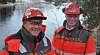 F.v. prosjektleder E134 Damåsen-Saggrenda Tom Hedalen og byggeleder Myntbrua-Trollerudmoen Ola Håvard Hole, Statens vegvesen ved Lågen der ny bru skal bygges