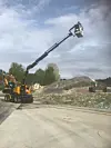 Teknobygg har nylig investert i en en skinnegående gravemaskin med bakmontert lift som rekker 14 meter.