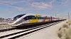 Det som skal bli USAs første virkelige høyhastighets jernbanelinje er påbegynt mellom Los Angeles og Rancho Cucamonga utenfor Los Angeles. Illustrasjon: Brightline West