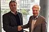 Fra signeringen; Styreleder og eier i Tertnes Holding AS, Jan Olav Jørgensen (t.v.), og adm. dir. i KB Gruppen, Tore Thorstensen.