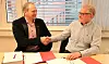 Prosjektsjef Ove Nesje i Statens vegvesen (t.v.) og anleggsdirektør Hans Ragnar Uthus i Kruse Smith har underskrevet kontrakten. (