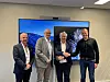 Prosjektleder i Statens vegvesen, Geir Strømstad (t.v), viseadministrerende direktør i Leonhard Nilsen & Sønner AS (LNS), Dag Rindal Brox, utbyggingsdirektør i Statens vegvesen, Kjell Inge Davik, og anleggssjef i Risa, Kato Risa, signert kontrakten på riksvei 13 Lovraeidet-Rødsliane.