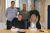 Signering av avtalen mellom Jernbaneverket og LNS. Fra venstre: Simen Grenersen (prosjektleder JBV), Guttorm Ræder (byggeleder JBV), Hugo Hildal Johansen (anleggsleder LNS) Foran fra venstre: Stein Hugo Steffensen (prosjektsjef JBV), Ann Pedersen (Prosjektdirektør Nord LNS)