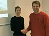 Kontraktssignering ved seksjonssjef Siri Anne Mørk i Bymiljøetaten og distriktssjef Morten Sjøli i Peab Anlegg.