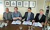 Regionvegsjef Helge Eidsnes (nr to fra venstre) og Roman Fuksa, director of division 5 Metrostav, signerte onsdag kontrakt om Veitastrondsvegen. Heilt til høgre Oddgeir Havnen i Havnen Anlegg og heilt til venstre Ole Ingar Hæreid frå Sogn og Fjordane fylkeskommune. (