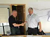 Torbjørn Naimak, og Roar Sve, prosjektsjef i Skanska underskriver kontrakten for bygging av Sørkjostunnelen.