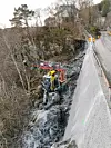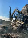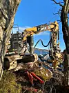 Contexos medarbeidere og en Menzi Muck i samarbeid på krevende klatreoppgaver på Askøy-oppdraget. Foto: Contexo