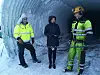 Svea Nord Gruve stenges av statssekretær Lucie Katrine Sunde -Eidem i Nærings- og fiskeridepartementet. Prosjektleder Gudmund Løvli (til venstre) og gruvearbeider Bjørn Olaf Engen følger med.