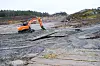 I fjellet forbi gravemaskinen kan man se hvordan entreprenør har renset det ene berget i midten for at det ikke skal rase igjen. Til høyre kommer påkjøringsrampe til Europaveien. Foto: Marius Lysø
